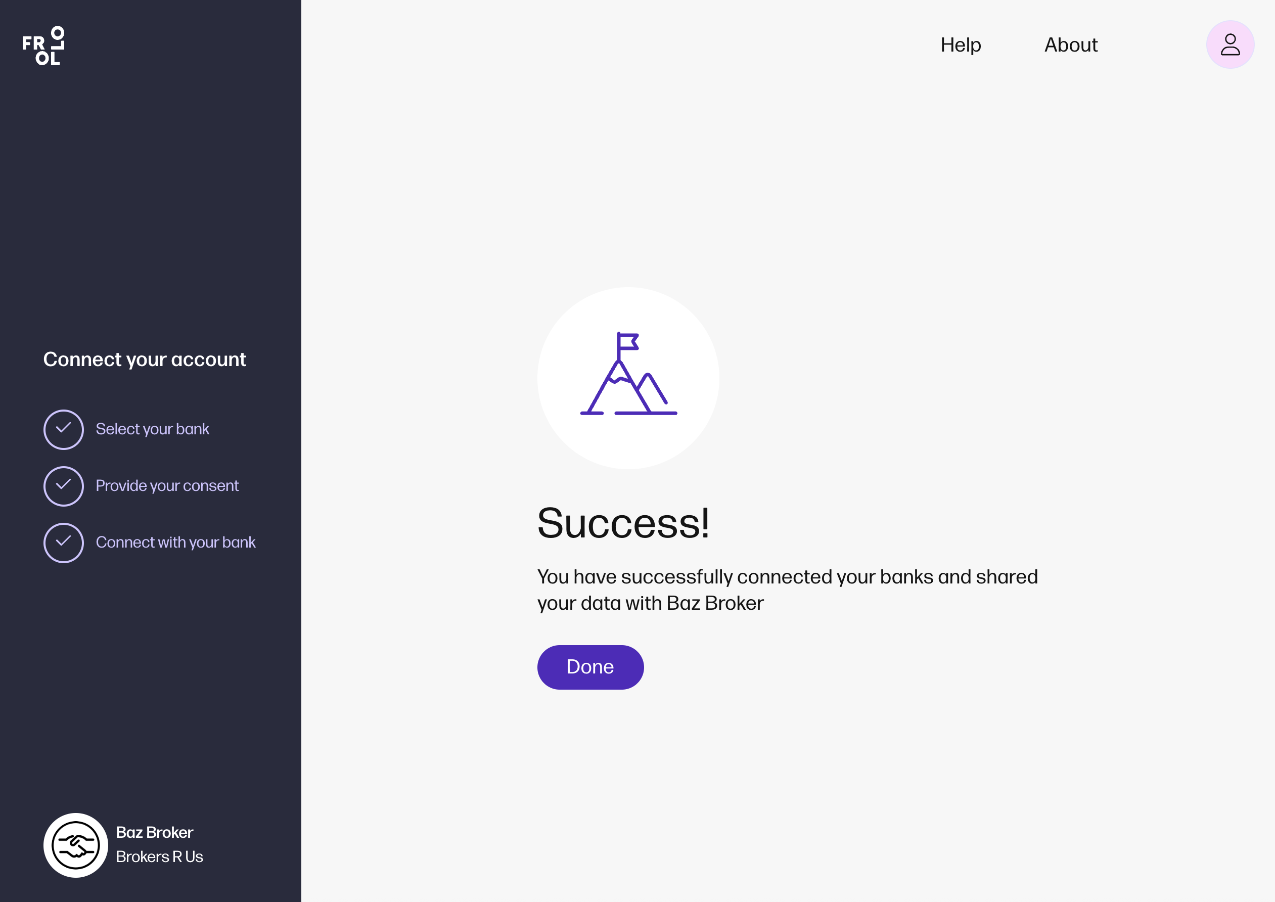 Success! You have successfully connected your accounts and shared your data with your mortgage broker. They will be able to retrieve your data and documents from their secure Frollo for Brokers account. |