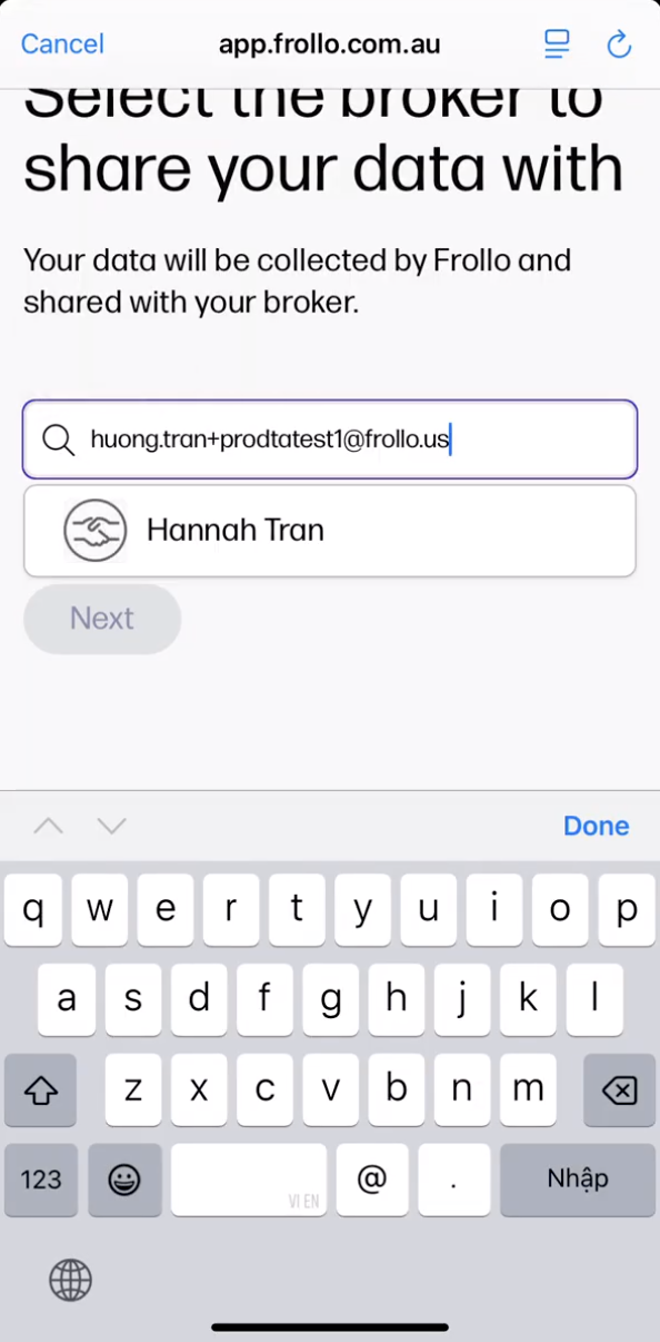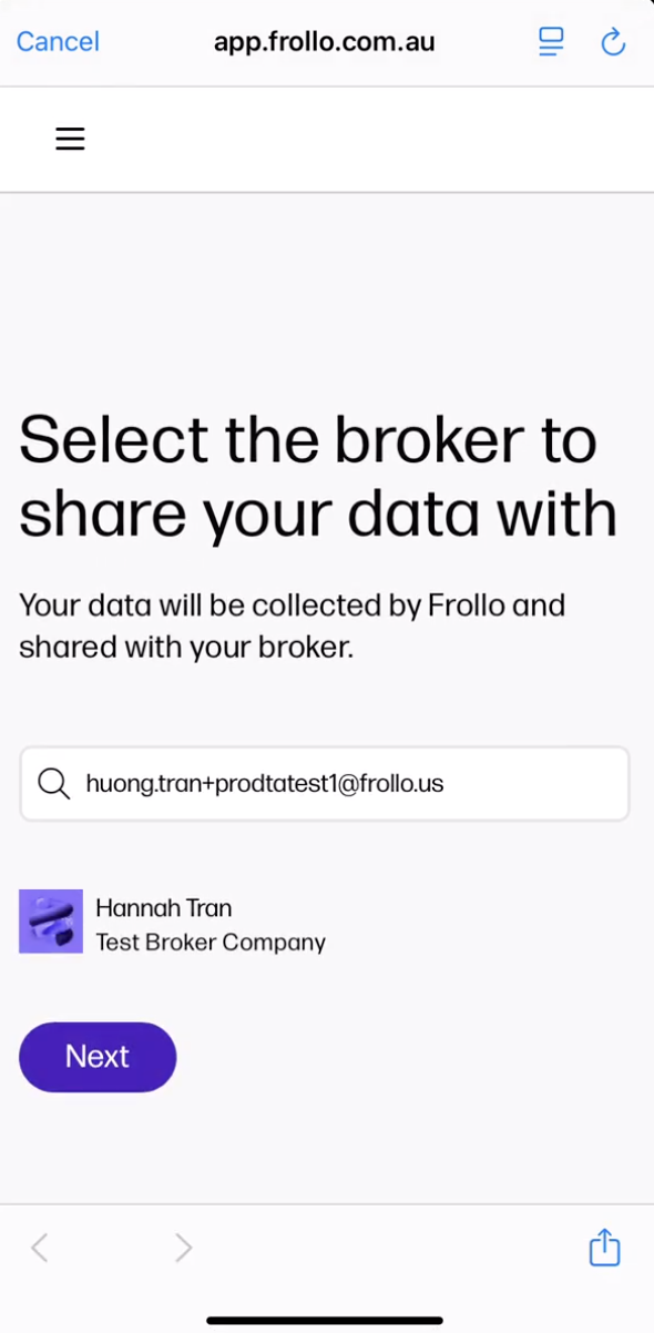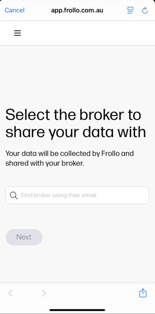 Following this, you can search for your broker by email within your Frollo app under Settings > Data Sharing > Disclose your data.