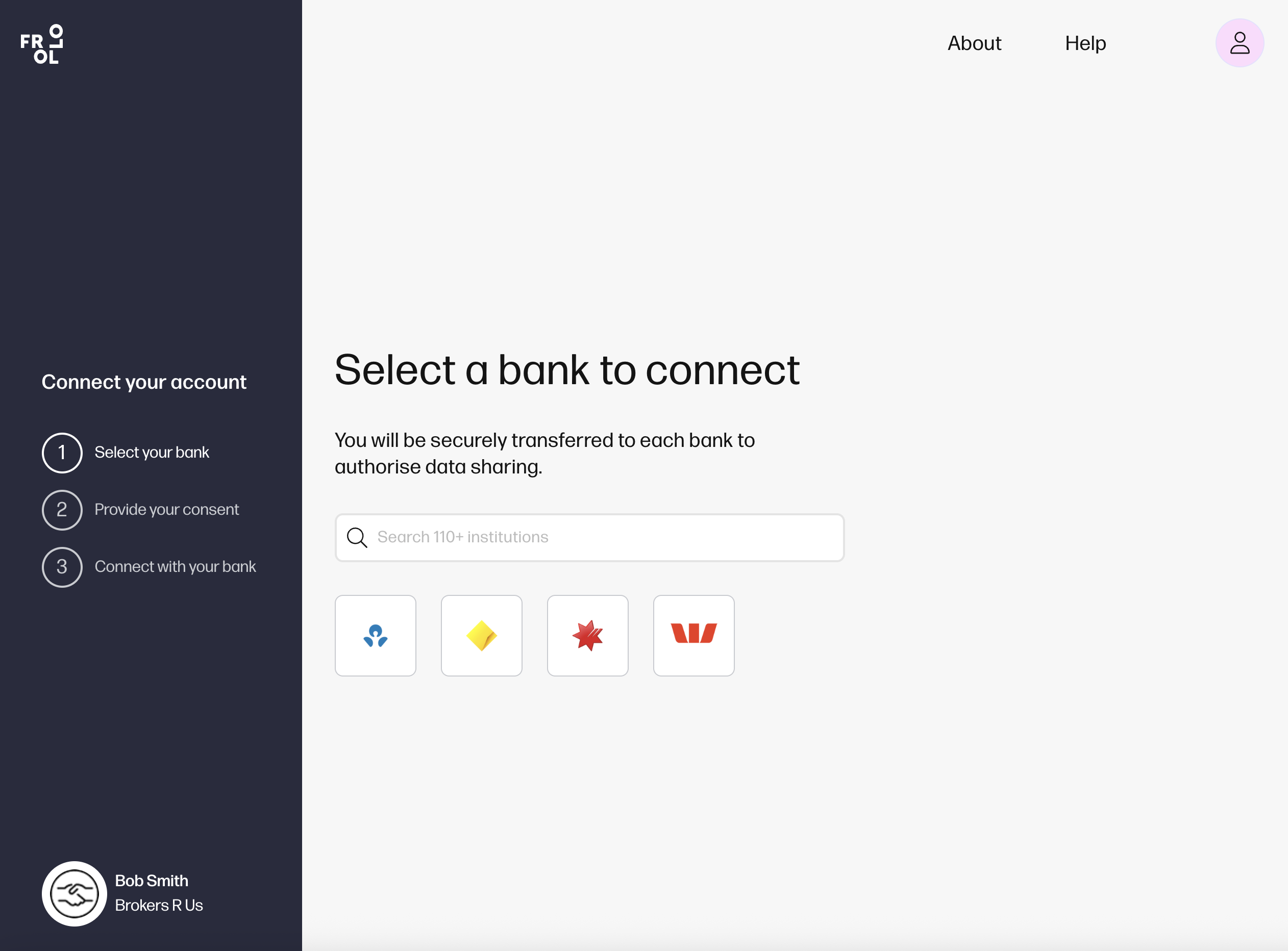If your broker is not registered with Frollo for Brokers, you'll need to use the Frollo webflow from their invite to use Open Banking.