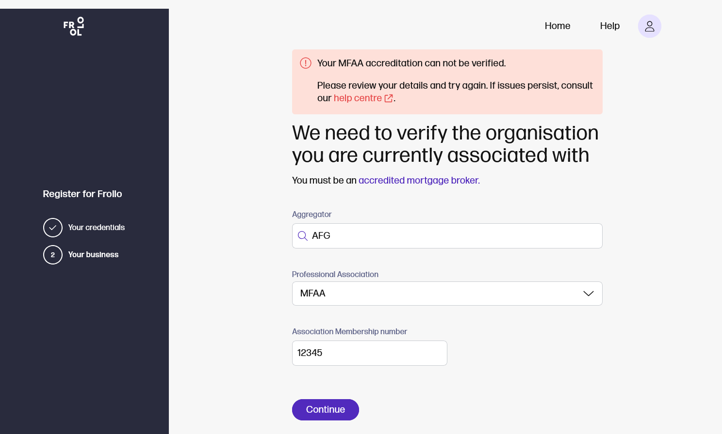 What organisation are you currently associated with? You must be a current member of an Australian Finance Association to use Frollo for Brokers: 1. Mortgage and Finance Association of Australia (MFAA) 2. Finance Brokers Association of Australasia Limited (FBAA)
