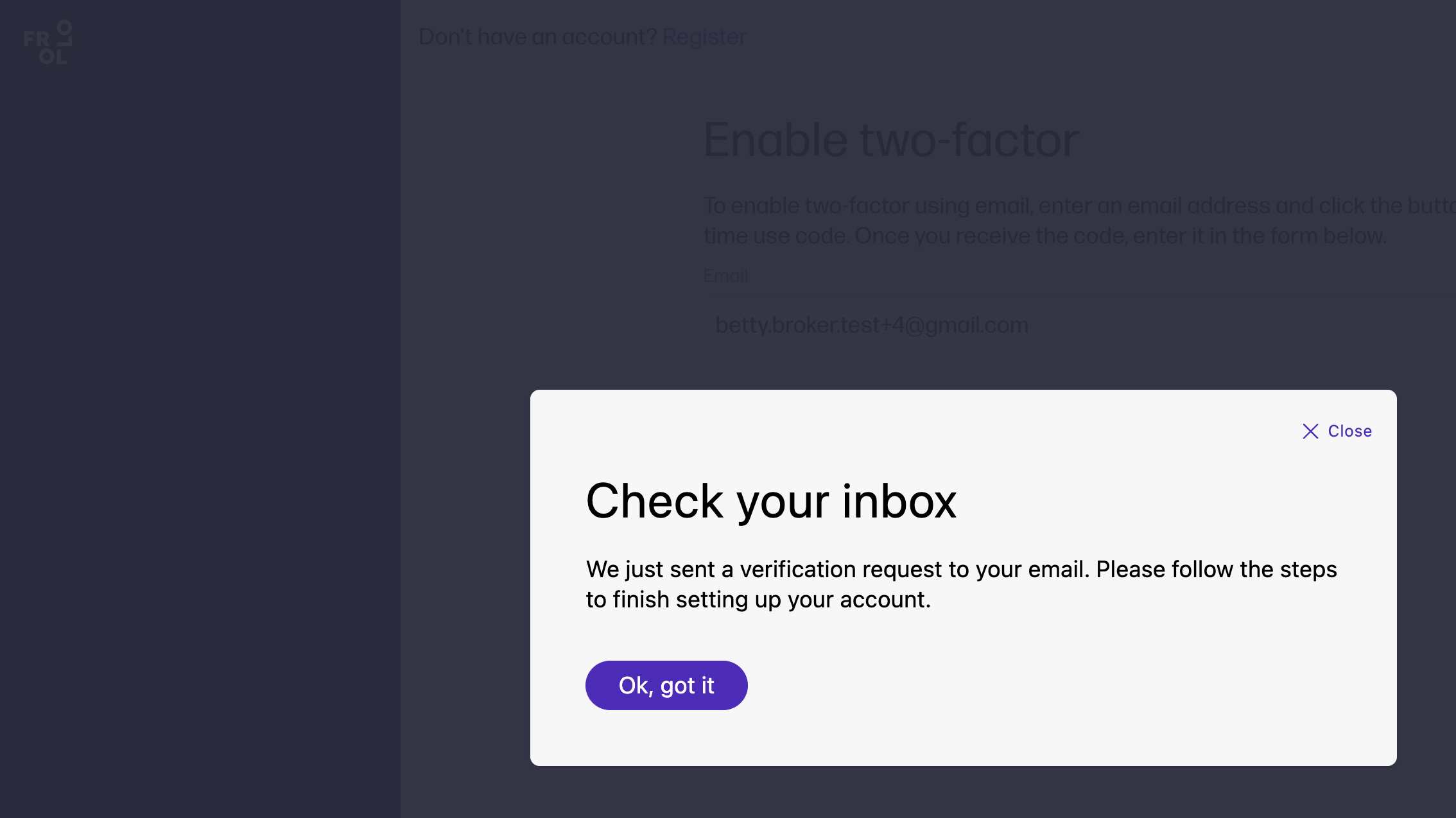 Visit Frollo for Brokers and select Register now. |