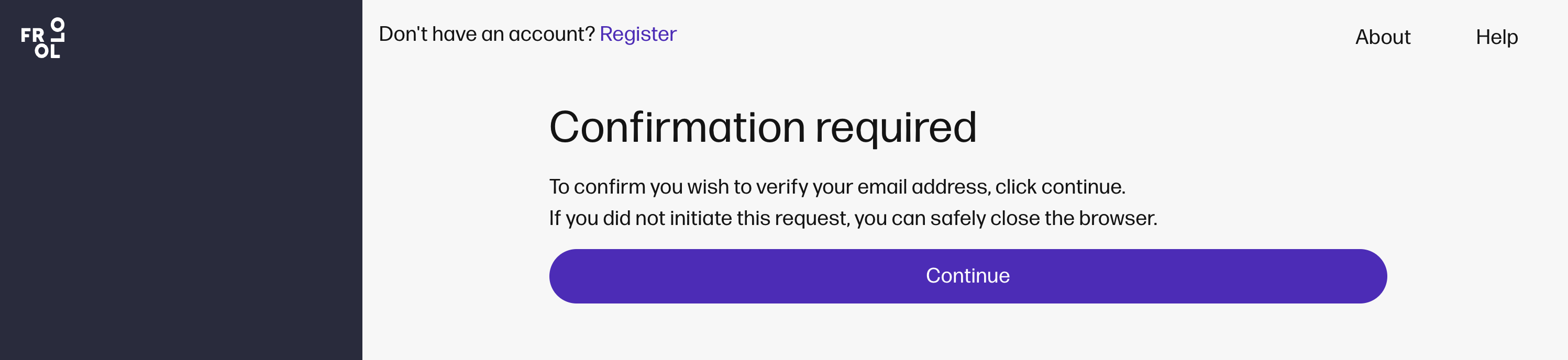 Email verification required. If you opted for option 1, you will receive a link to verify your email via your nominated email. Click the link, then select Continue to complete verification. |