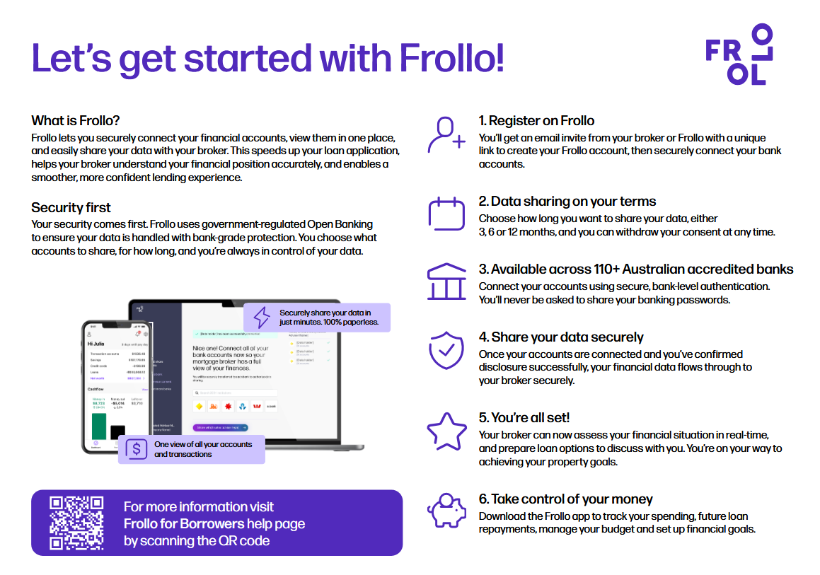 Some clients may be using Frollo for the first time and may have questions about how it works. To help support these conversations, we've created a Frollo Client Quick Step Guide that brokers can share digitally or print and use during client discussions.